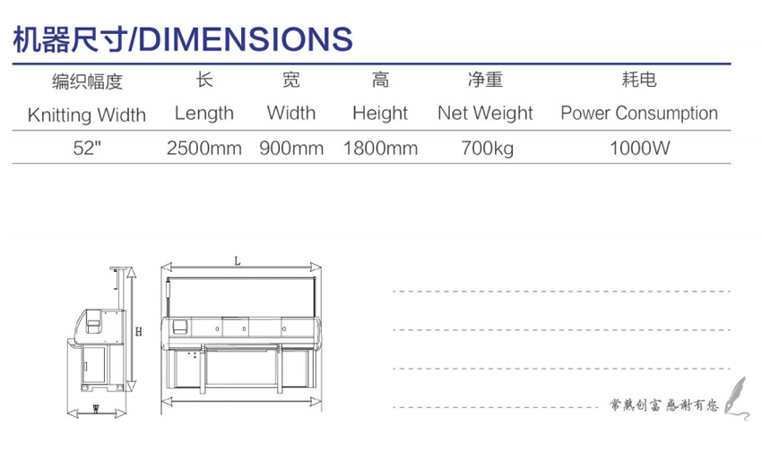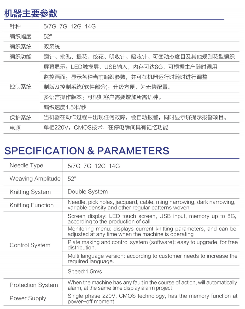 针距/Gauge: 5/7G 7G 12G 14G 编织宽幅/ Breadth: 52"